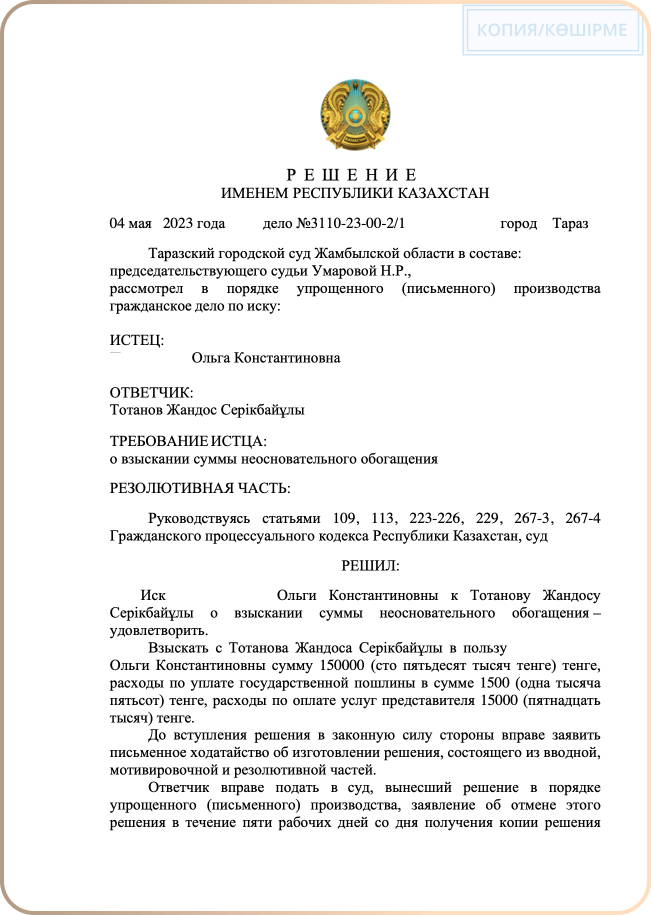 нашего Клиента взыскали 2 733 396 тенге, в том числе расходы на